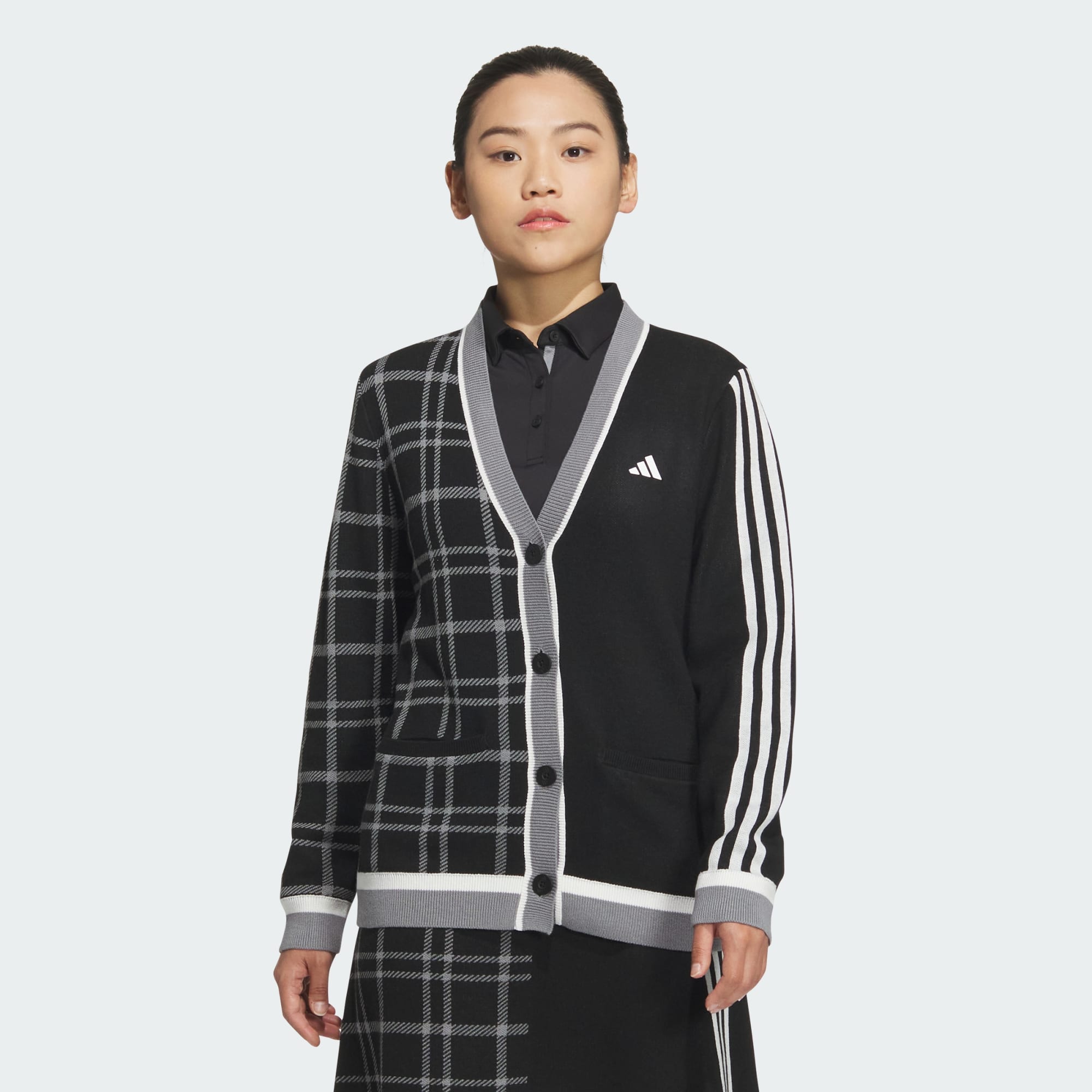 【ゴルフ】アシンメトリーパターン スリーストライプス カーディガン