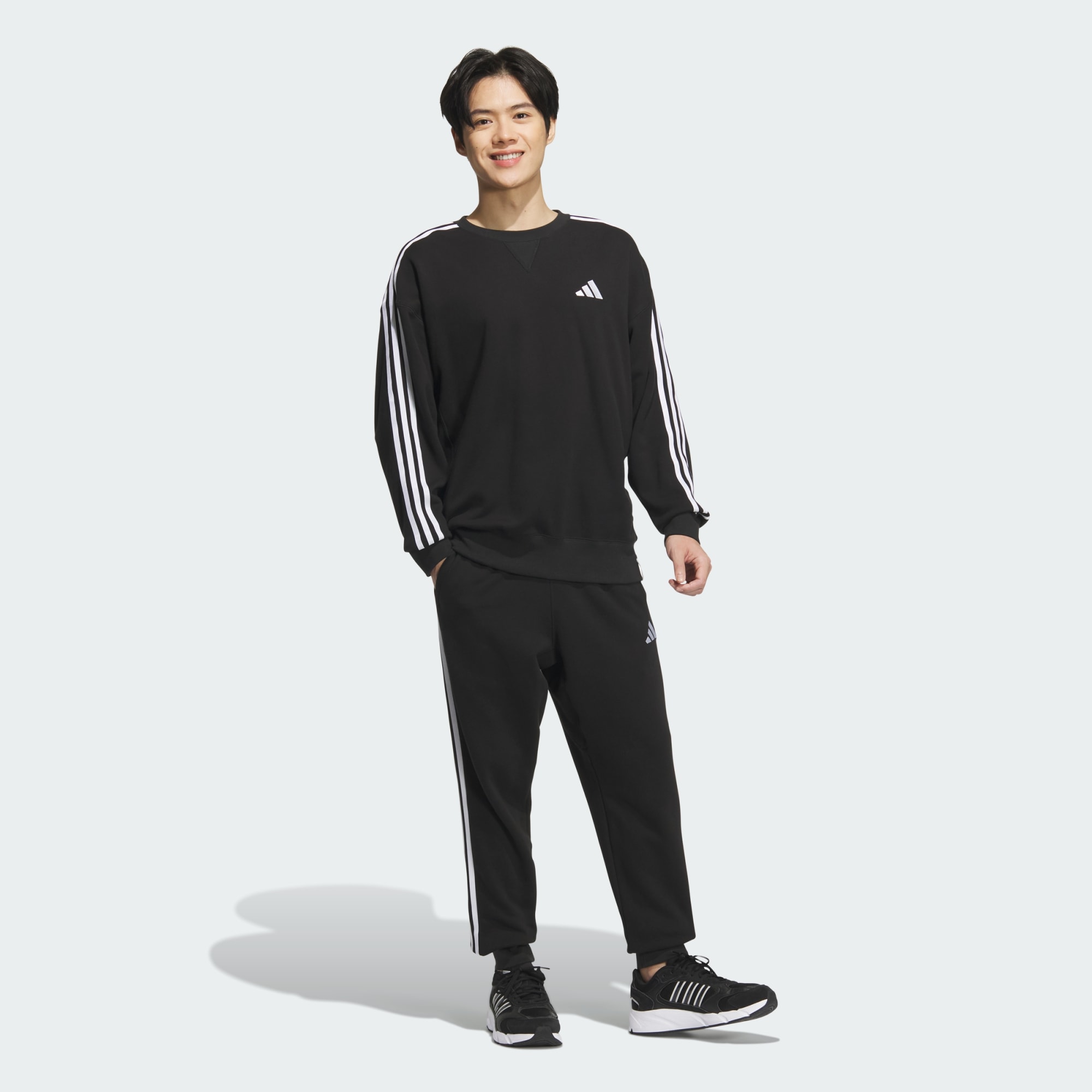 エッセンシャルズ プラス ルーズフィット スリーストライプス フレンチテリー スウェットシャツ