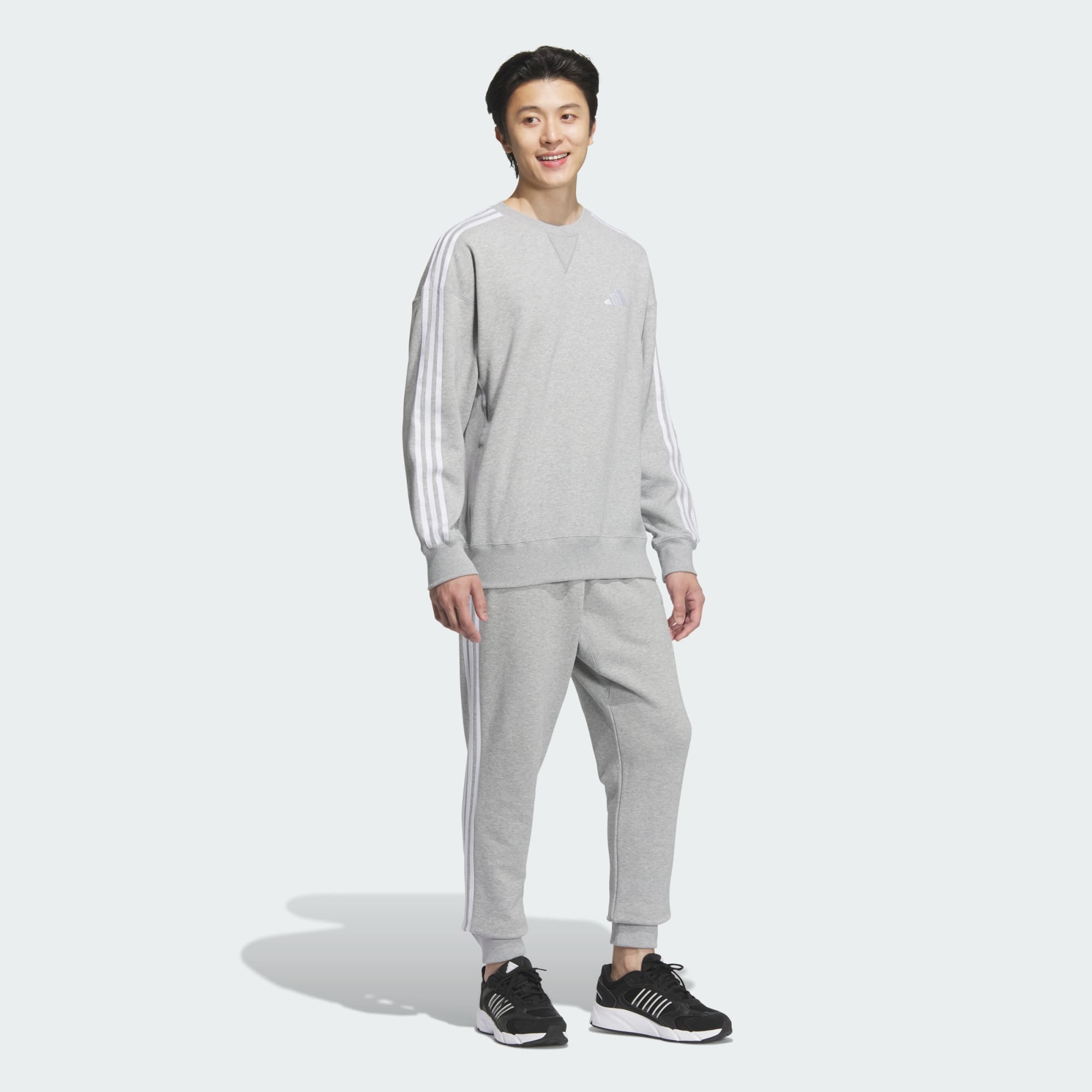 エッセンシャルズ プラス ルーズフィット スリーストライプス フレンチテリー スウェットシャツ