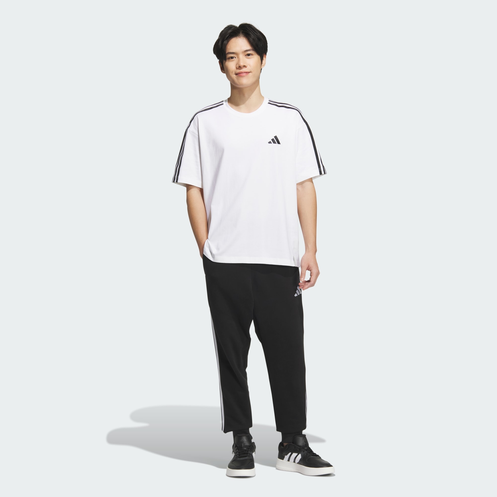 エッセンシャルズ プラス レギュラーフィット スリーストライプス フレンチテリー カフパンツ