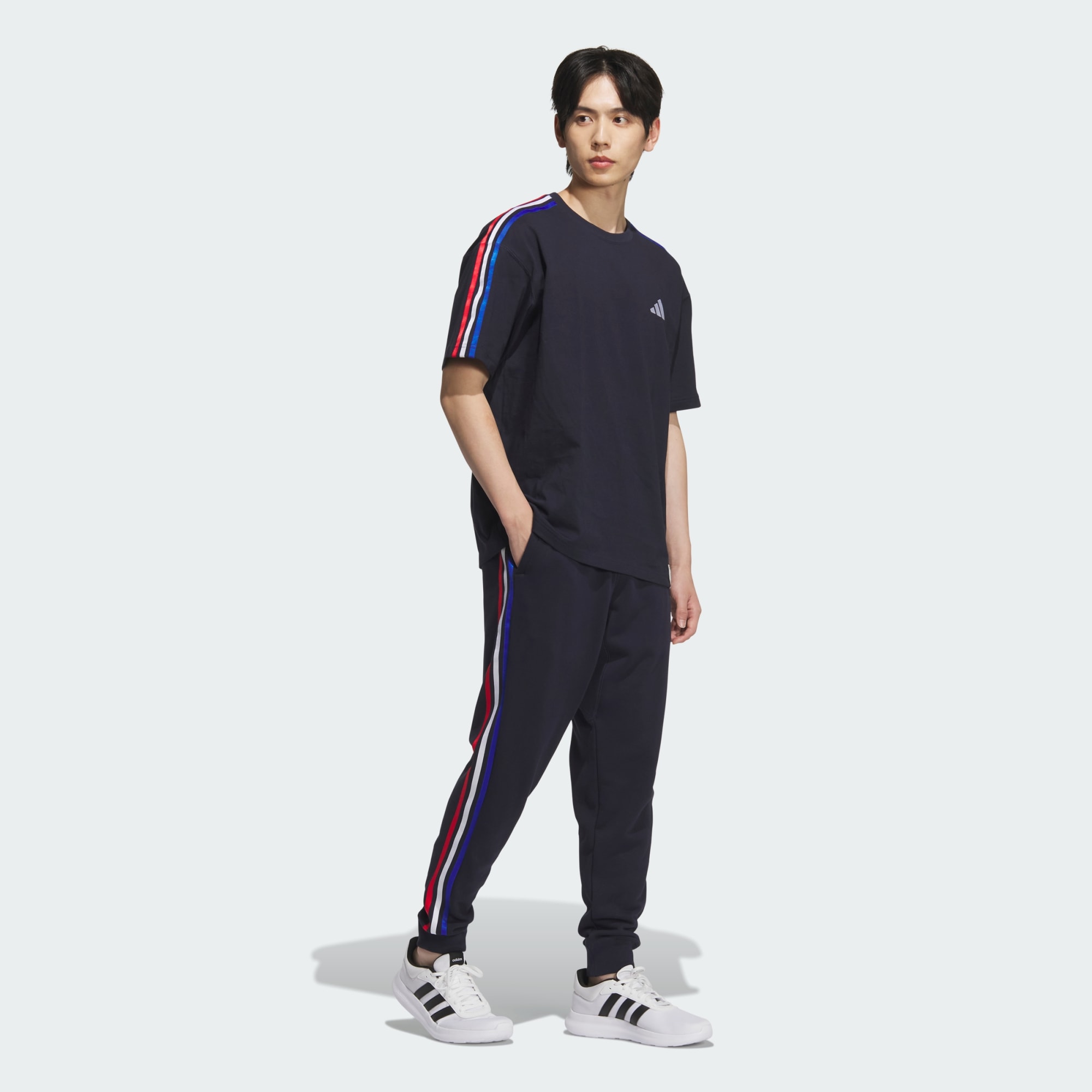 エッセンシャルズ プラス レギュラーフィット スリーストライプス フレンチテリー カフパンツ