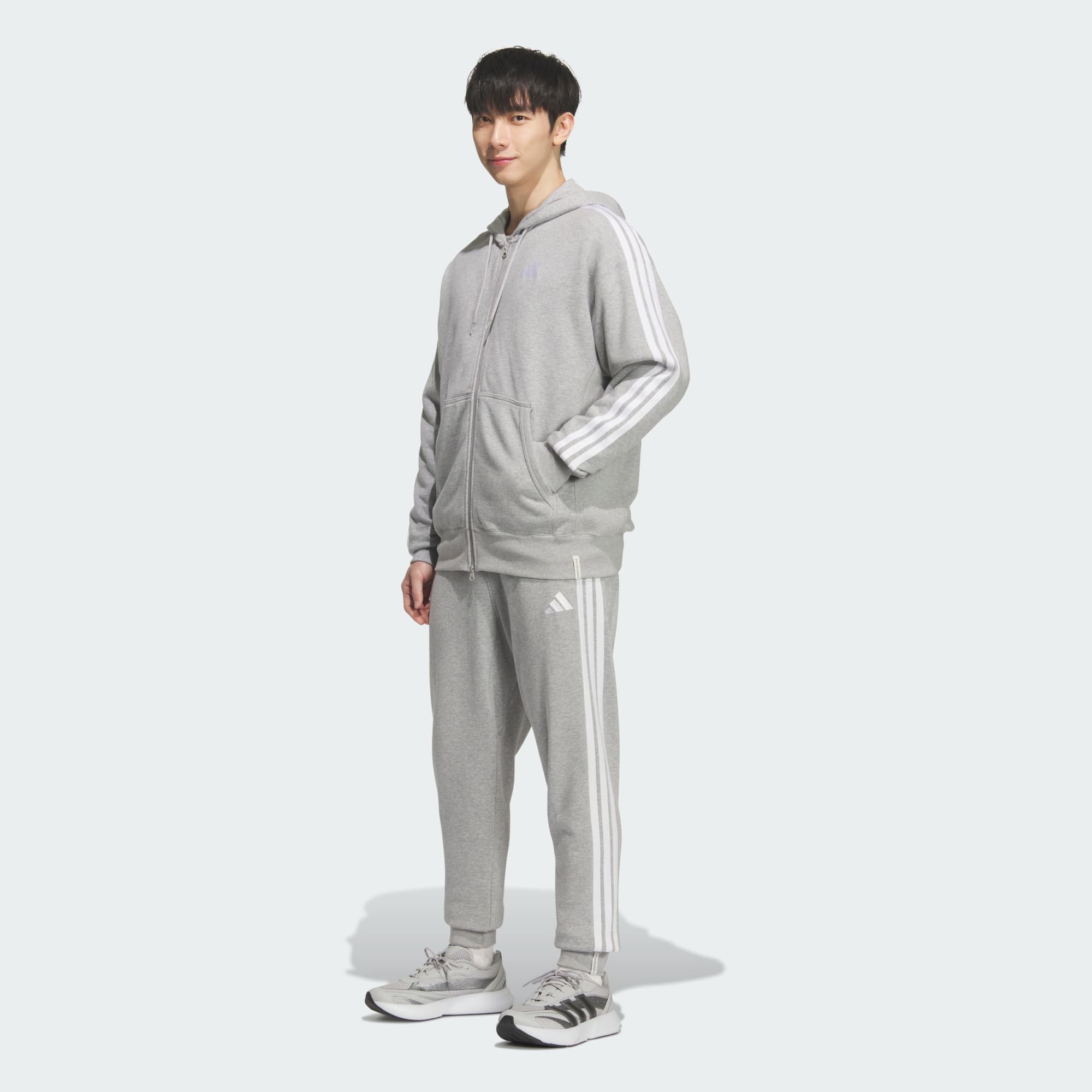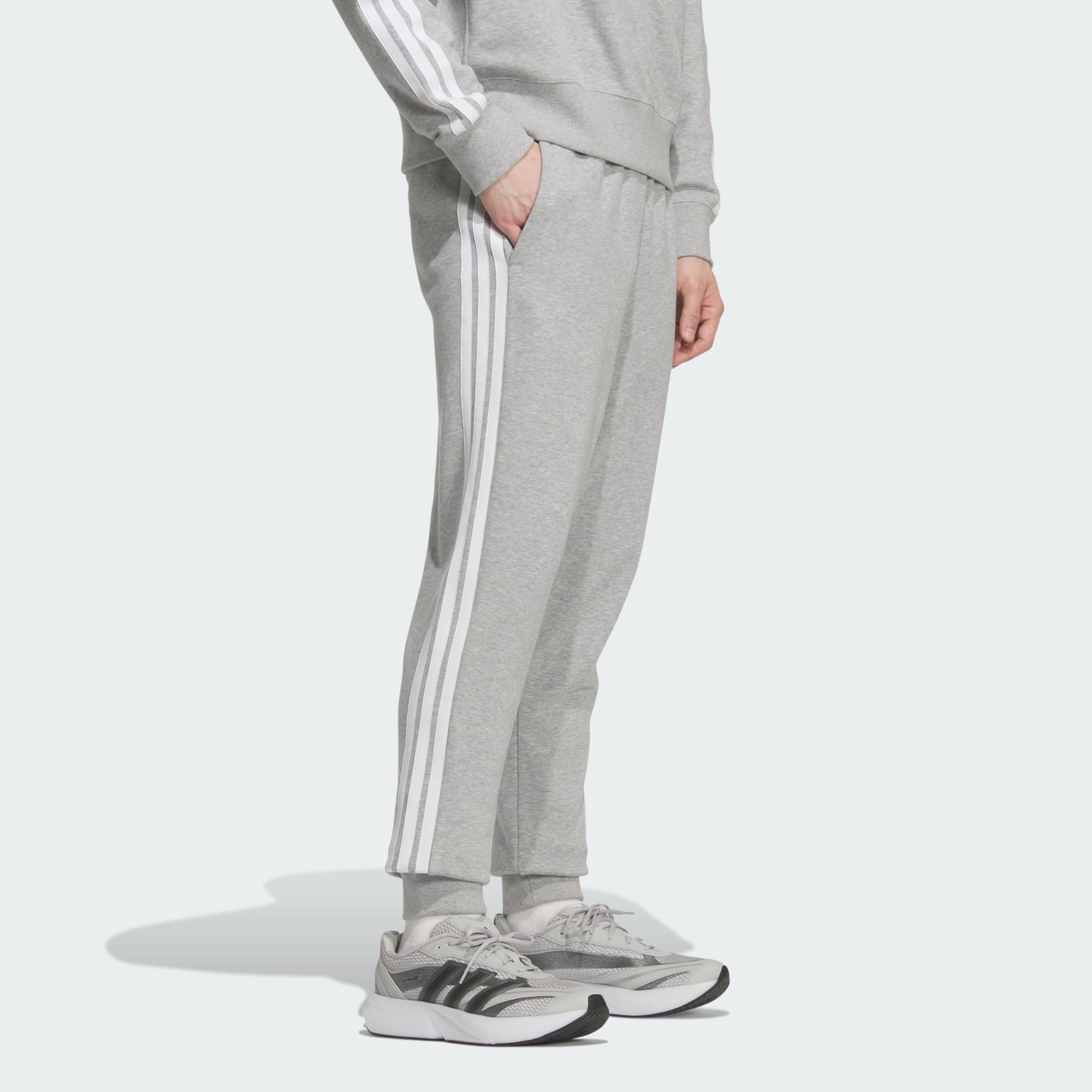 エッセンシャルズ プラス レギュラーフィット スリーストライプス フレンチテリー カフパンツ