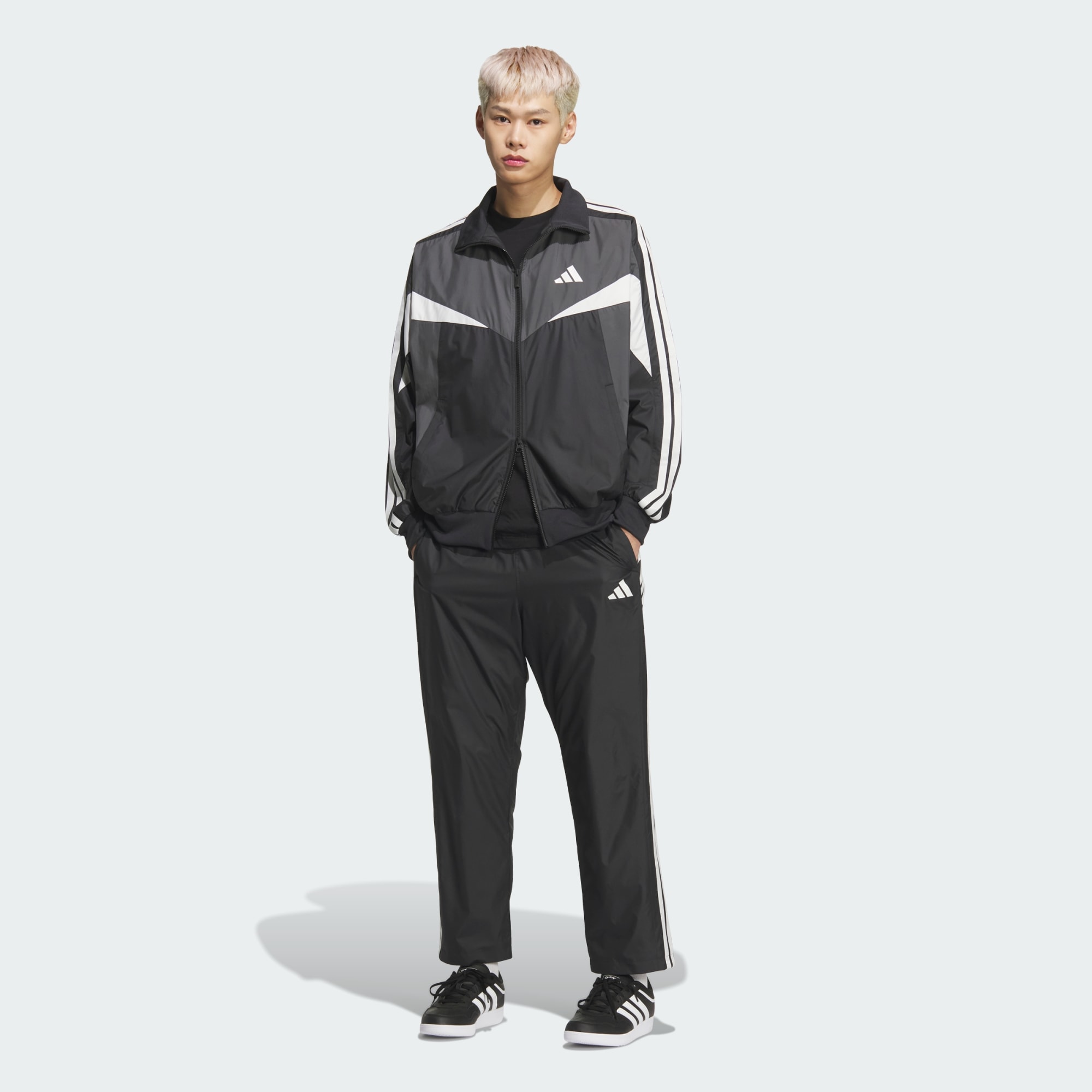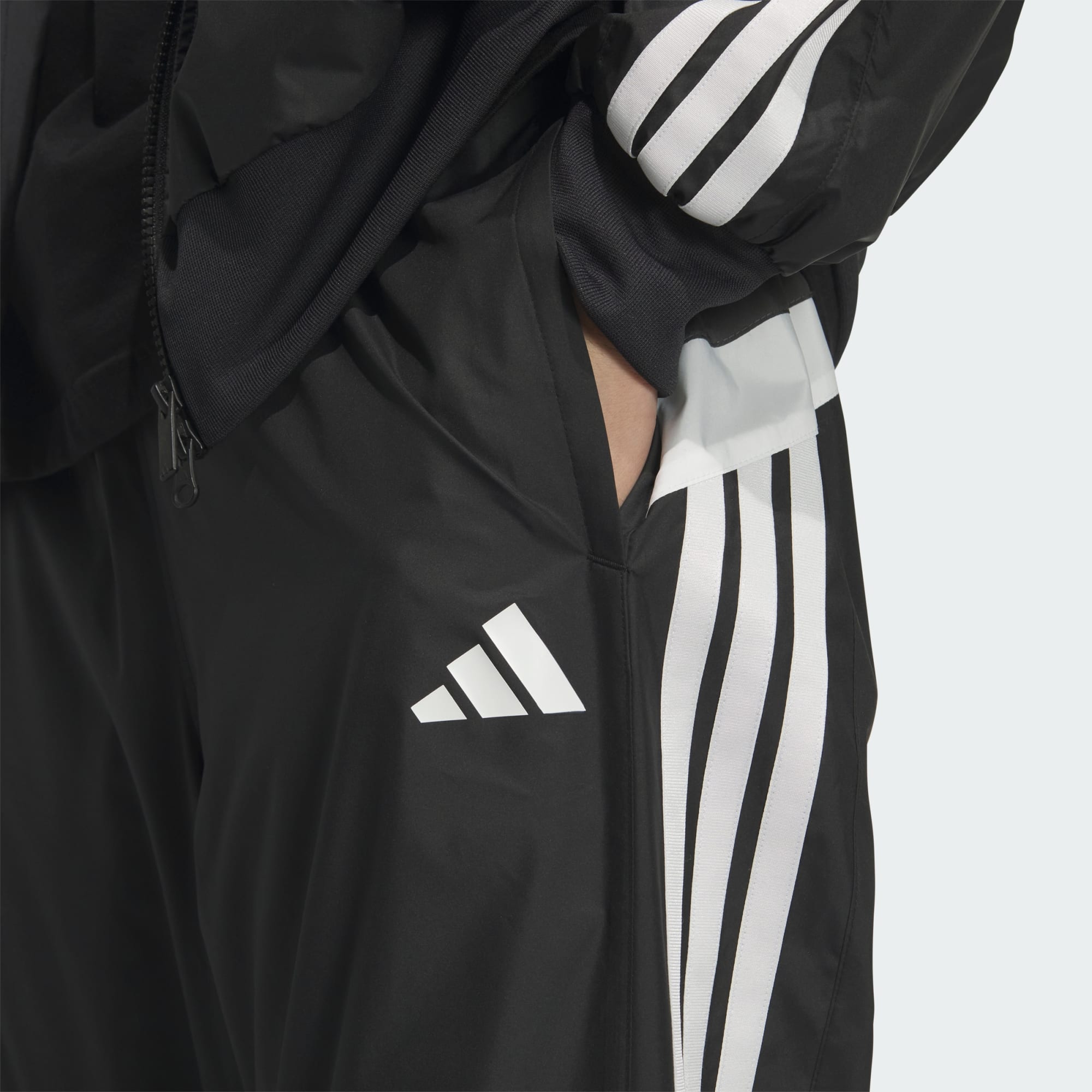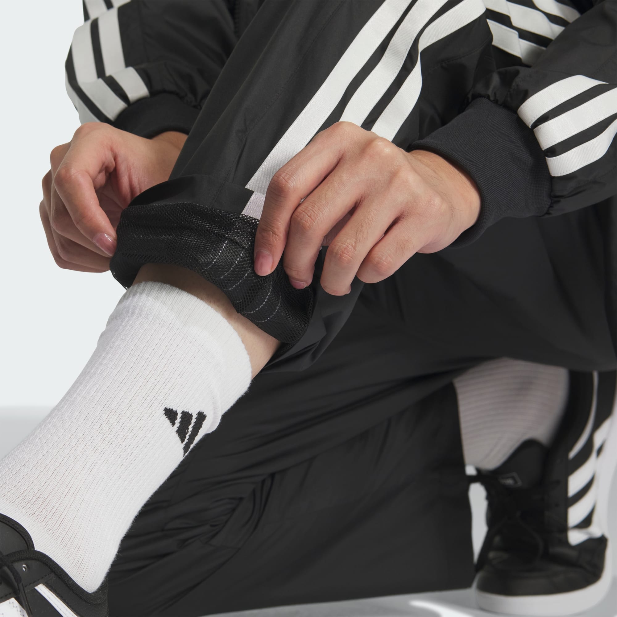 マストハブ ルーズフィット カラーブロック メッシュライニング フルレングス オープンヘム ウィンドパンツ