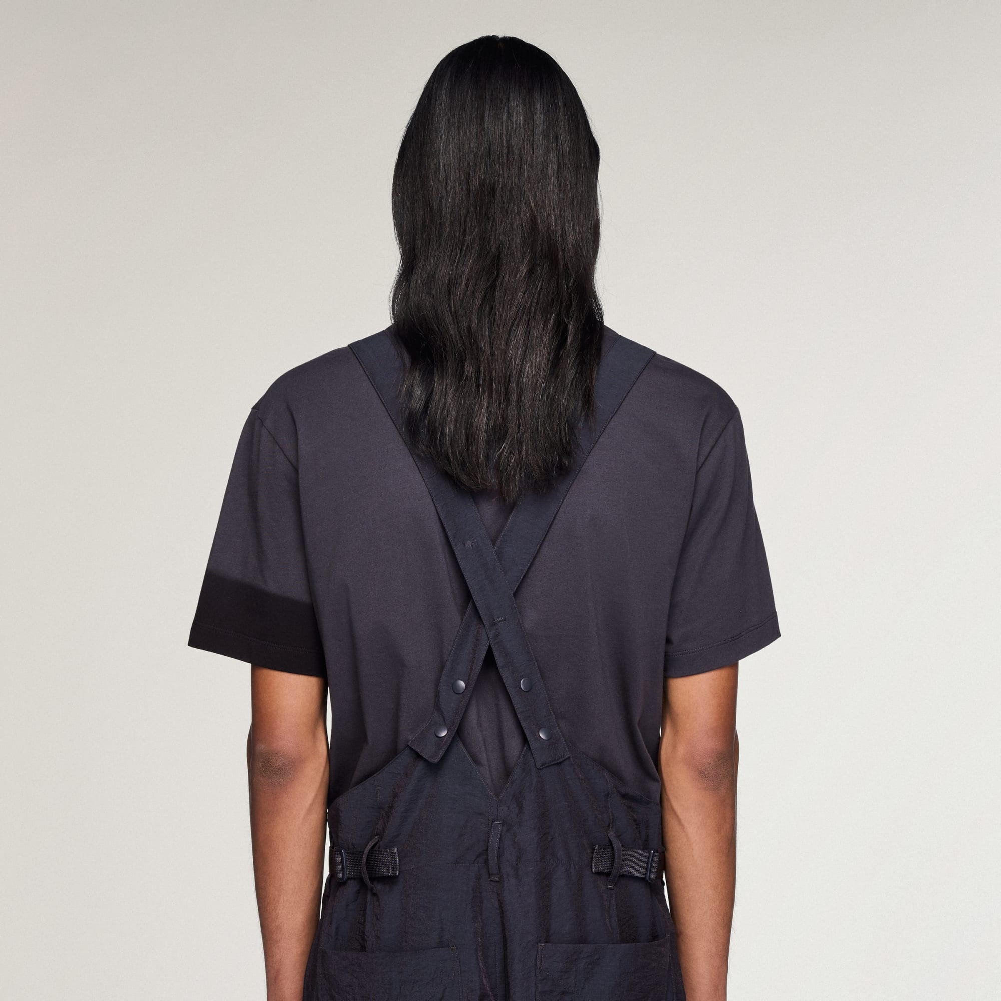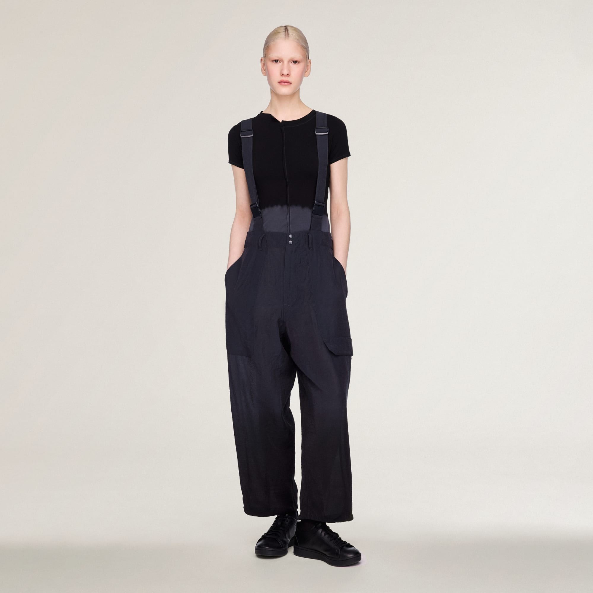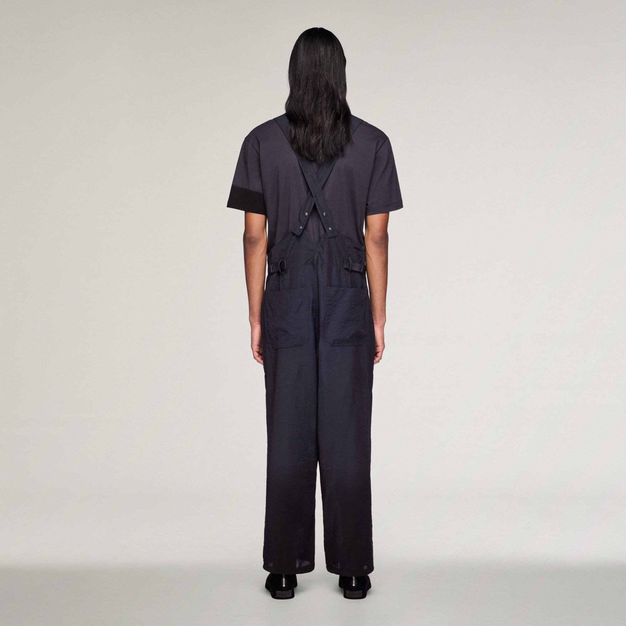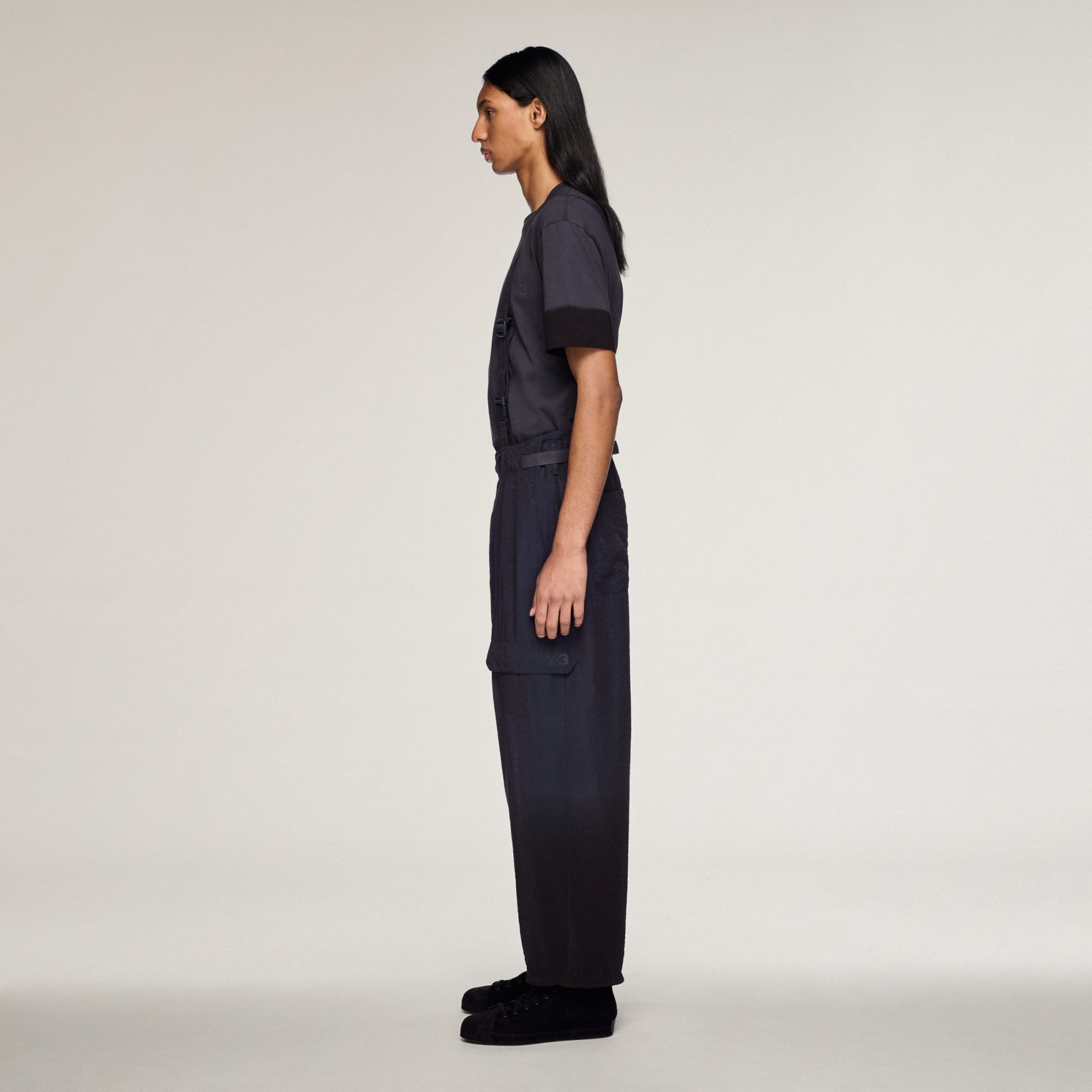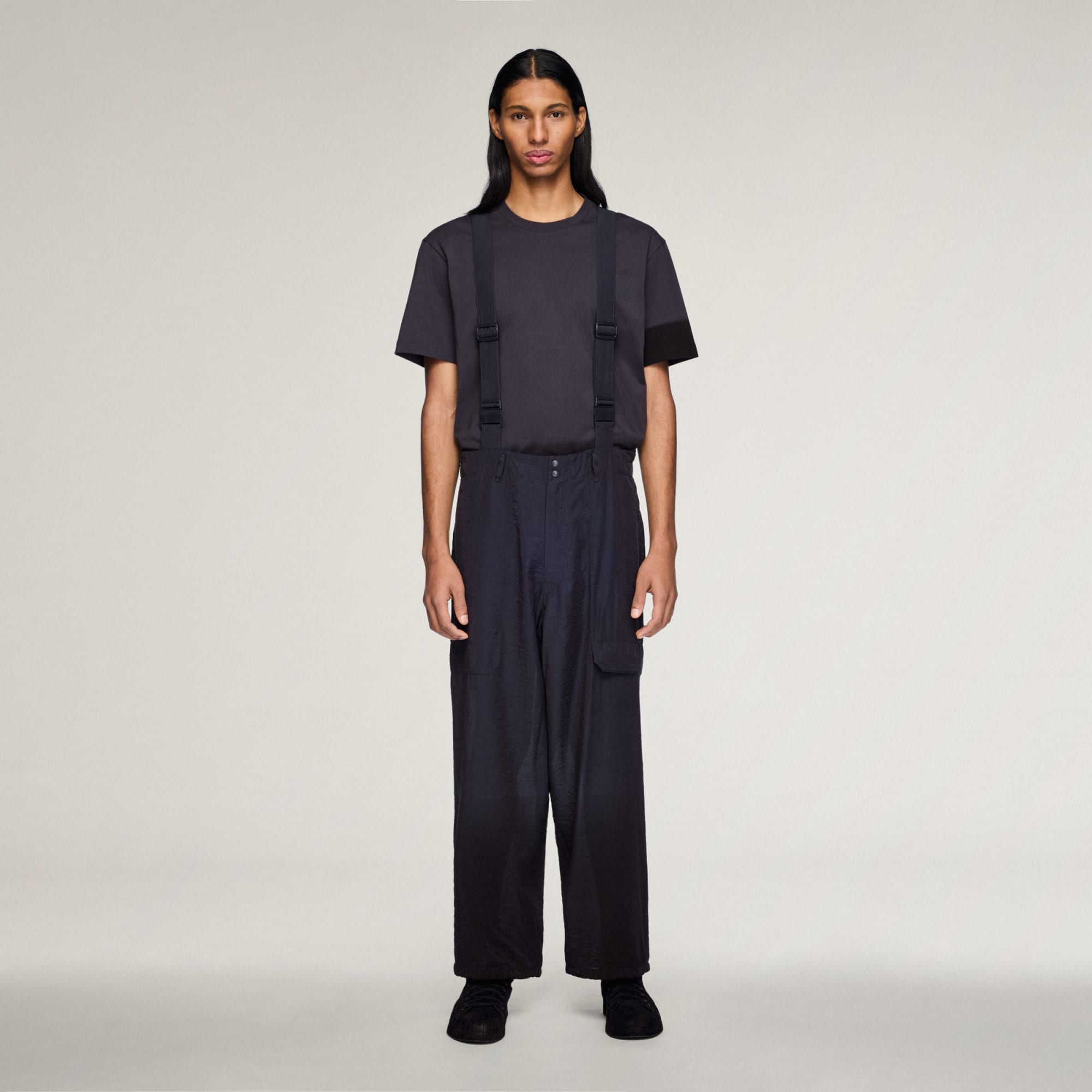Y-3 CRINKLE VISCOSE SUSPENDER PANTS